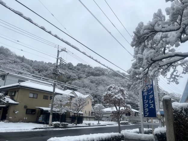 (先日の雪、意外にすごかったですね。塾の先生は体力勝負の一面もあります。ですから、いつまでもしっかりとした授業ができるよう、ジムに通って体力維持に努めています。写真はジムの駐車場から撮った雪の日の風景です)