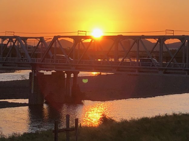 昨日、渡良瀬橋の近くを通るときに、見事な夕日に遭遇しました。
