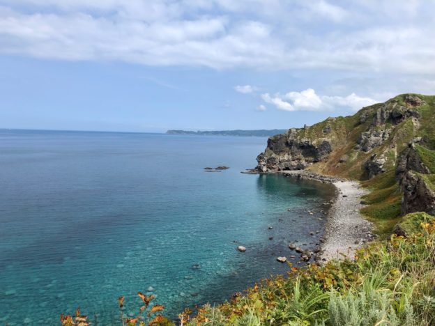 (写真は北海道の積丹半島です。積丹半島の夏の海は、その鮮やかな青色から積丹ブルーと呼ばれています。この写真だけ見ると、何となくハワイかどこかの風景に見えますね・笑)